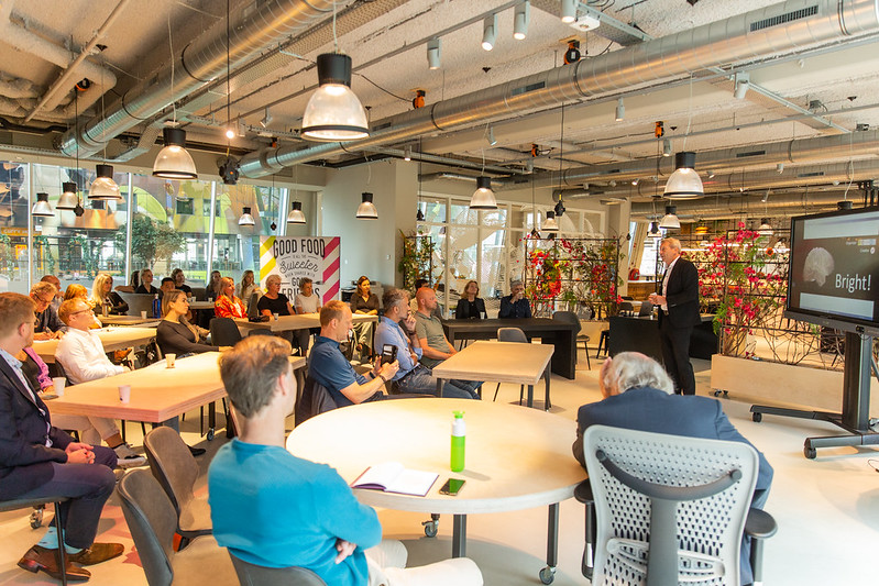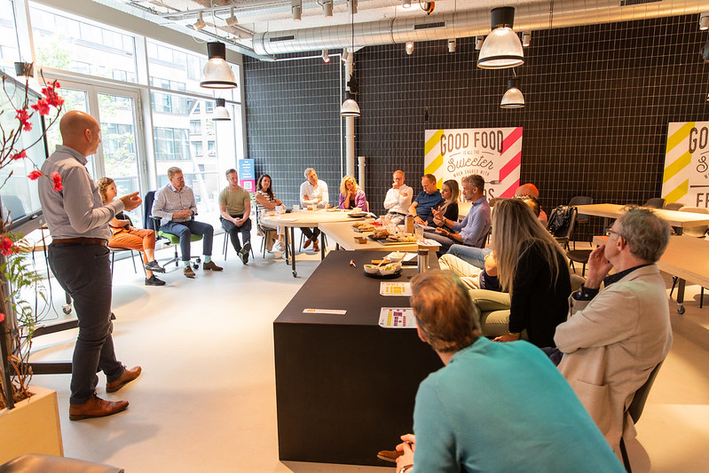 Zo’n vijfentwintig deelnemers waren aanwezig op de bijeenkomst, in de Markthal in Rotterdam. Roeland Buijsse, bestuursvoorzitter van SVO vakopleiding food, heette de aanwezigen welkom: “De aanleiding voor het project waarmee we bezig zijn, is dat we een leven lang leren. We merken dat vooral volwassenen struikelen over het volgen van een hele mbo-opleiding. Modulair onderwijs is een vorm die juist heel goed aansluit bij de passie en talenten van mensen.”
