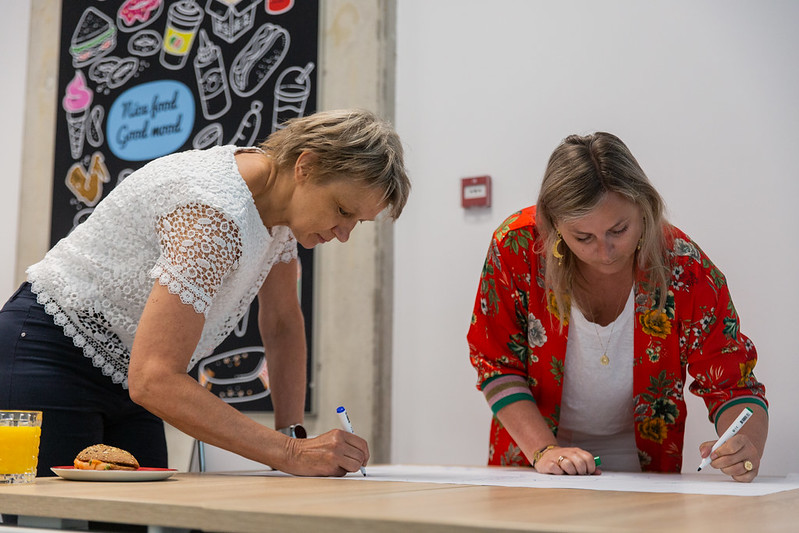 Op de tafels worden grote vellen papier gelegd met de namen van vijf nieuwe modules: Anatomie en voeding, Selectieve smaaksturing, Samenwerken, Slikproblematiek en ziekteleer, Ziektebeelden en voeding. Veldhuis: “We denken dat ze ontzettend goed passen bij wat de arbeidsmarkt nu vraagt.” De deelnemers gaan met elkaar in gesprek en schrijven ideeën omtrent de modules in ‘mindmapstijl’ op. Aan het einde van de workshop wordt er geïnventariseerd welke nieuwe modules de hoogste prioriteit moeten krijgen.